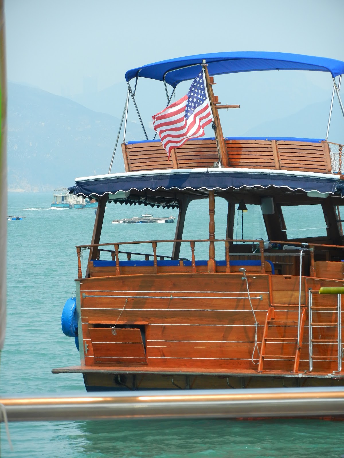 除了漁船之外, 也有不少遊船停靠在港灣中的另一面,兩三四艘相依而駁;其中有一艘插著星星旗的遊艇周身用上木板來裝飾,看著倒是挺有夏威夷風,也有些復古,突然想起今年夏天于西貢出海之時,見到的各種遊艇,除了大陸話的白色遊艇之外,還有太陽能動力的奢華遊艇,只供四五人搭乘的迷你型奢華遊艇,也有這種以復古風為特點的西式遊艇,而通常這類遊艇上都會傳來特別high 的pop music 上面的人更是隨著搖晃的船隻扭動身體,“飲酒作樂”即是我那日所見的感想了;而這日,倒見到一個靜態, 所有遊艇都只是浮在海面上。
